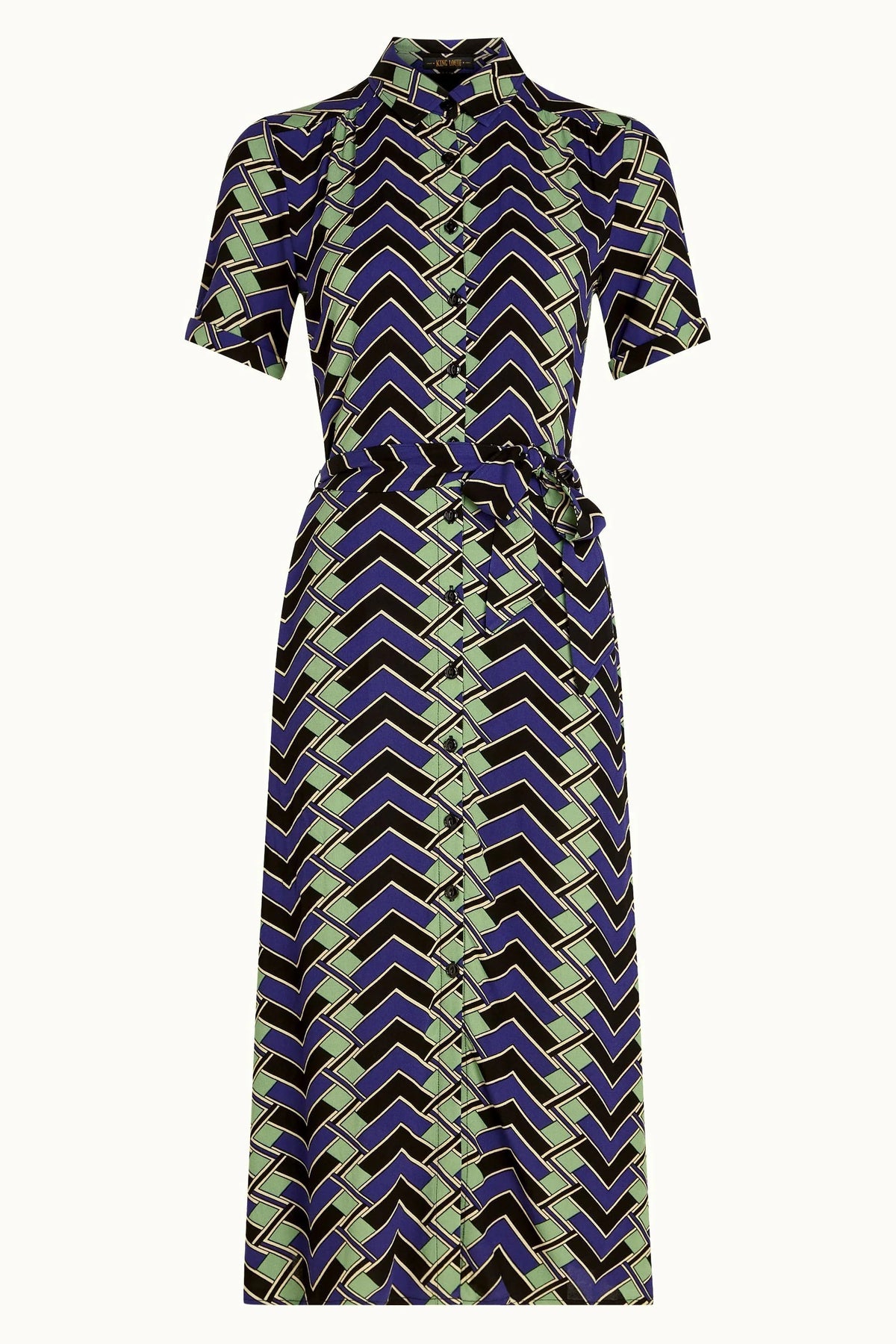 Feminin, frisk og behagelig – denne kjolen fra King Louie kombinerer klassisk snitt med et moderne grafisk trykk. Den er laget i myk Crepe Georgette av LENZING™ ECOVERO™-viskose, et mer bærekraftig materiale laget av sertifiserte fornybare trematerialer. Stoffet har en lett, luftig følelse og et vakkert fall som gjør kjolen både elegant og behagelig å ha på.