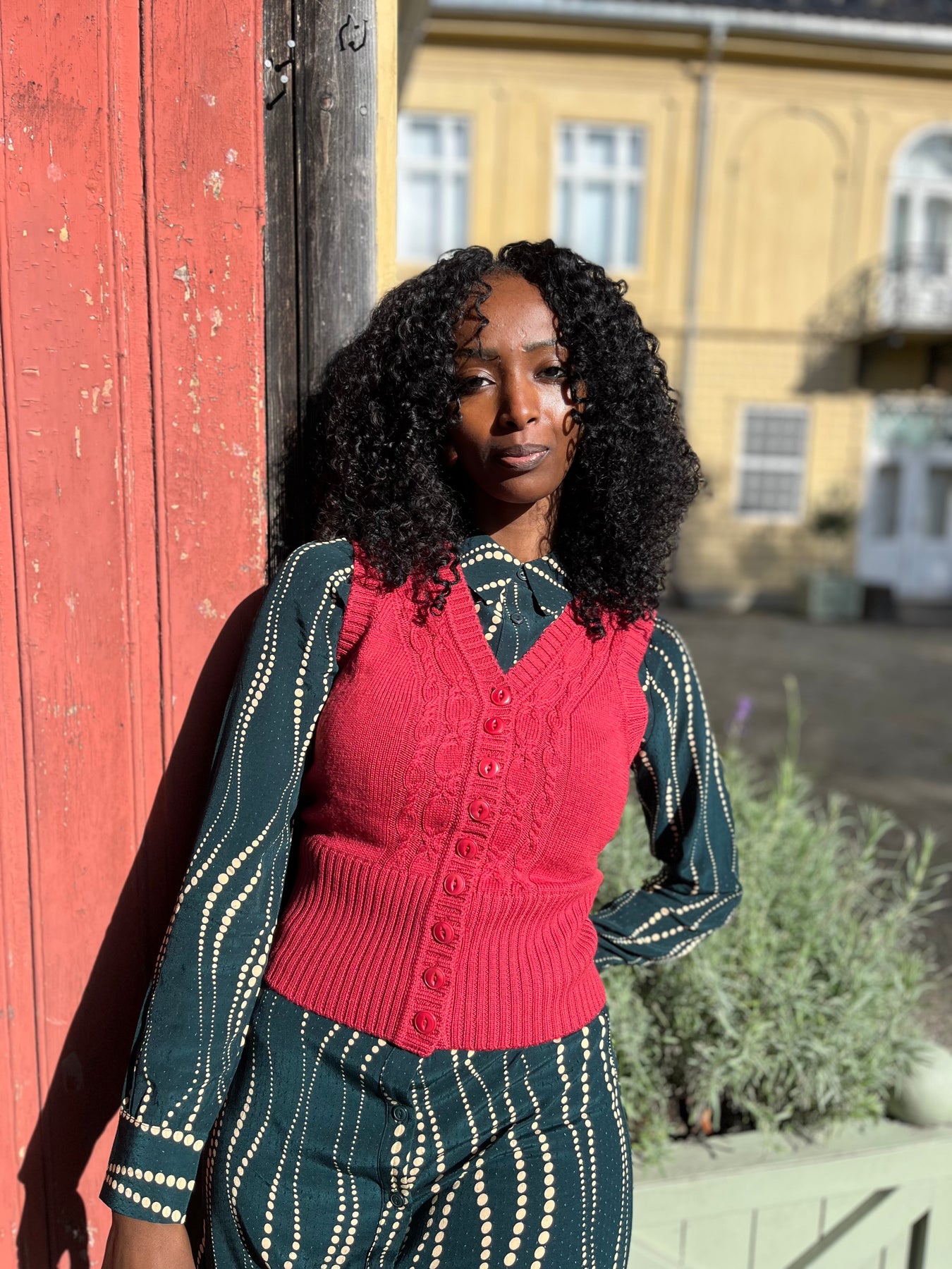 Gi antrekket ditt et friskt fargeinnslag med The Sassy Sweater Vest i den nydelige nyansen Pomegranate. Denne helt nye modellen fra Emmy Design er kortere enn tidligere vester og sitter pent over den øvre delen av hoften – perfekt til både bukser, skjørt og kjoler.