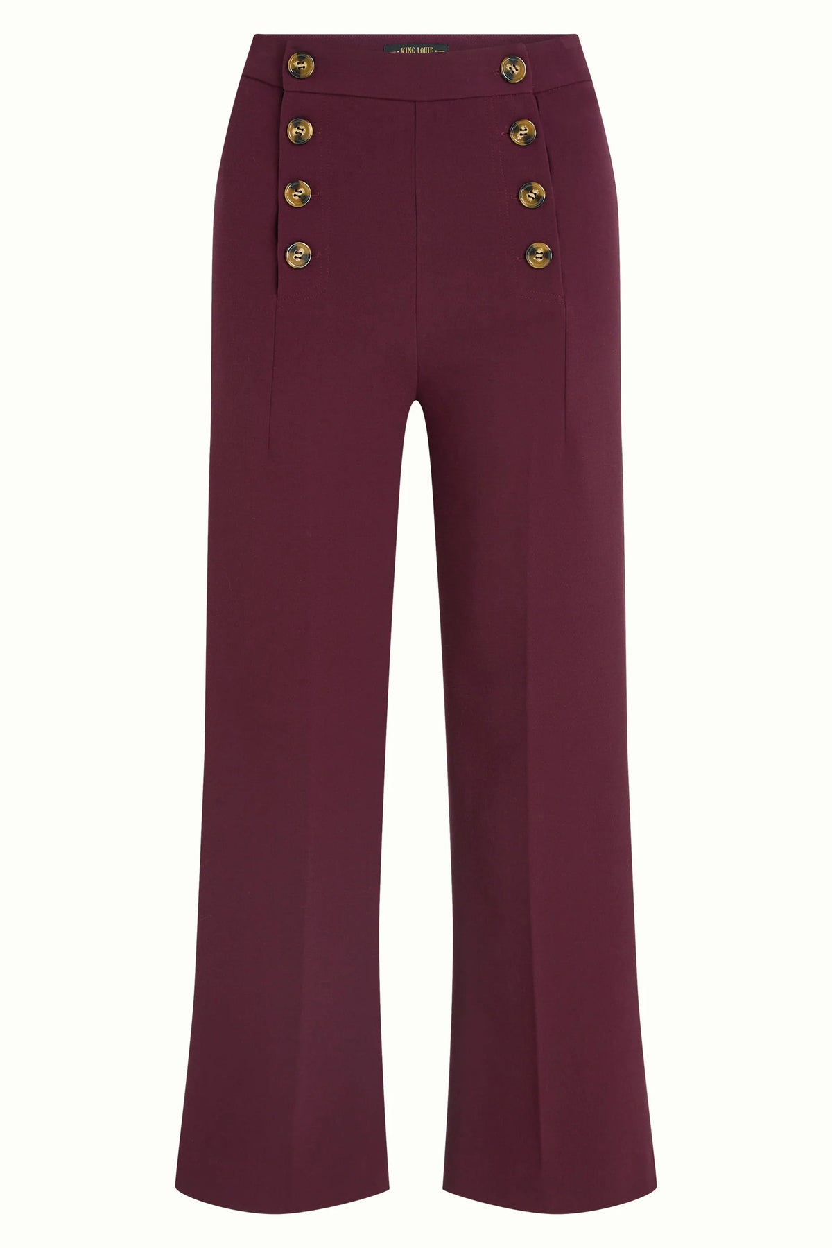 Gi antrekket ditt en touch av vintage-eleganse med Cinzia Pants Malone! Denne buksen kombinerer klassisk seiler-inspirert front med dekorative knapper og en tidløs silhuett. De vide, croppede bena gir en flatterende fasong og en leken retrofølelse, mens den lette vevde kvaliteten med komfortstretch gjør buksen behagelig å bruke hele dagen.