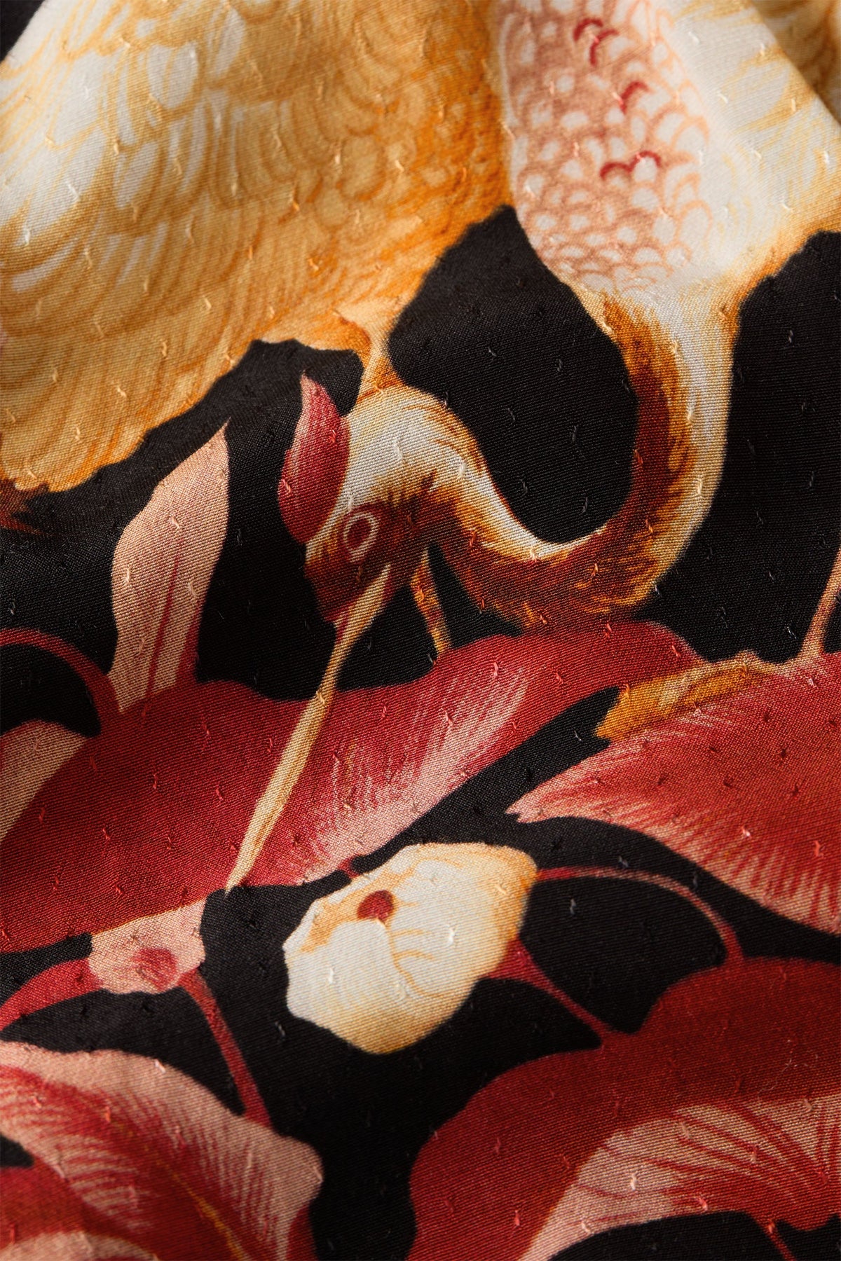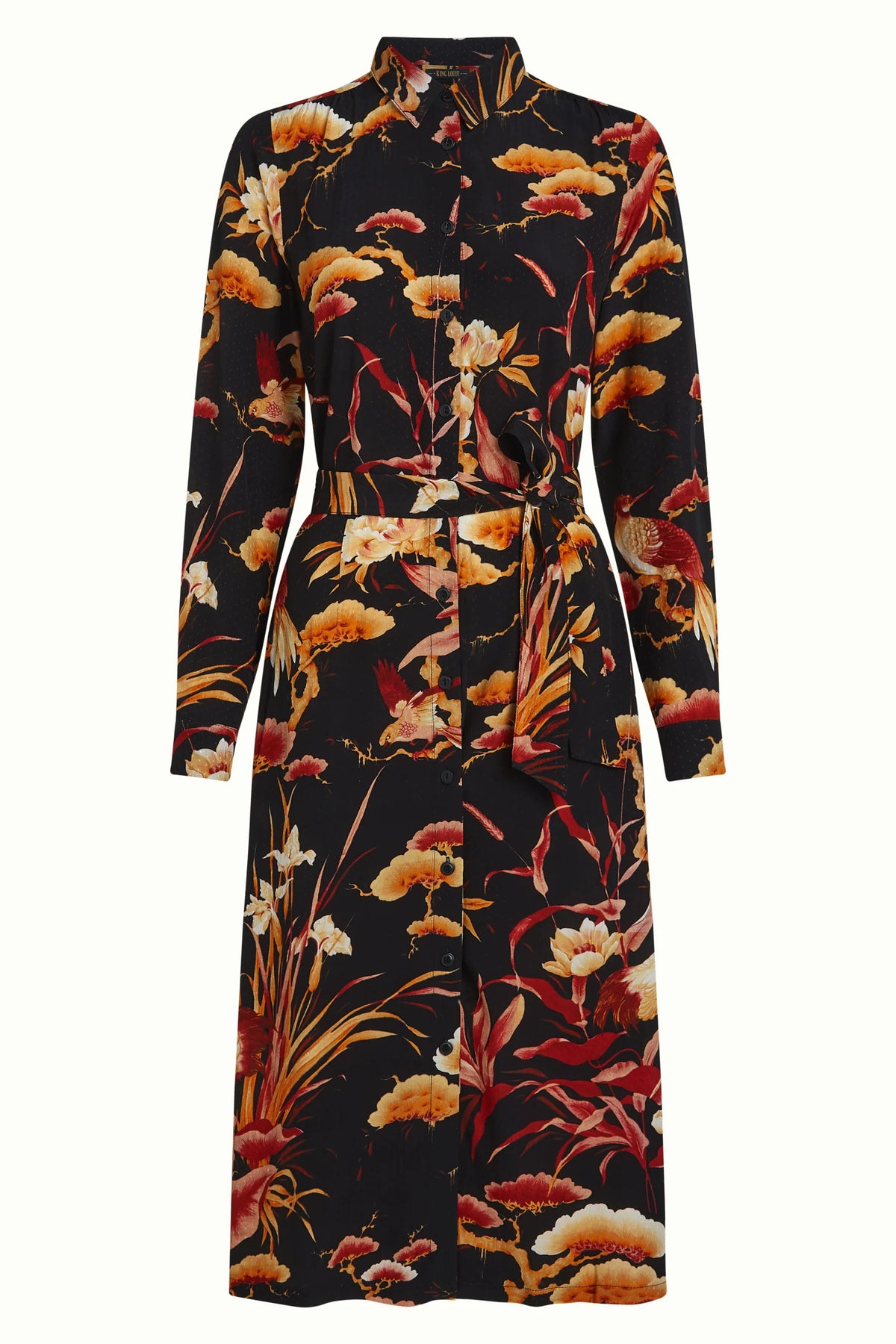 Olive Dress Neve er en tidløs kjole med vintage-sjarm og feminine detaljer. Den er sydd i en myk, vevd viskose uten stretch, som gir et lett og behagelig fall. Mønsteret i stoffet er helt nydelig, med et nikk mot Østen. Klassisk krage, knapper i front og lange ermer med mansjetter er dette en kjole som passer like godt på kontoret som på middag ute.