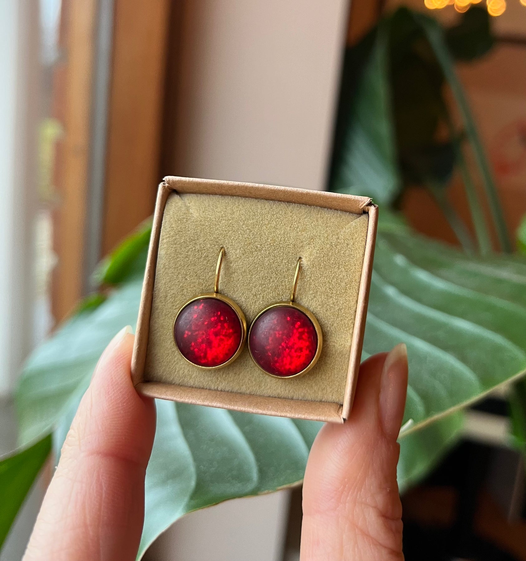 Dots Chili Red Glimmer Øredobber