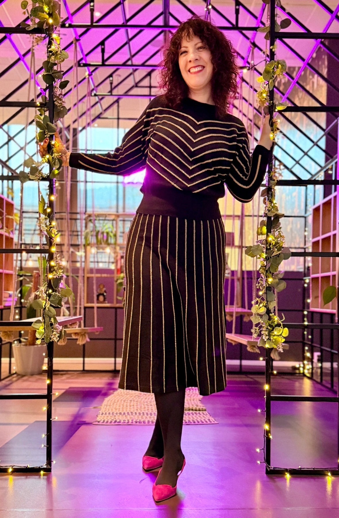 Plume Knit Skirt er et mykt, behagelig og elegant strikkeskjørt som gir den perfekte balansen mellom komfort og klassisk retrostil – akkurat slik vi elsker det hos Retropiken. Dette sorte skjørtet har en flatterende midi-lengde, et utsvingt snitt som gir vakker bevegelse, og en elastisk midje som gjør det lett å bruke både til hverdags og fine anledninger.