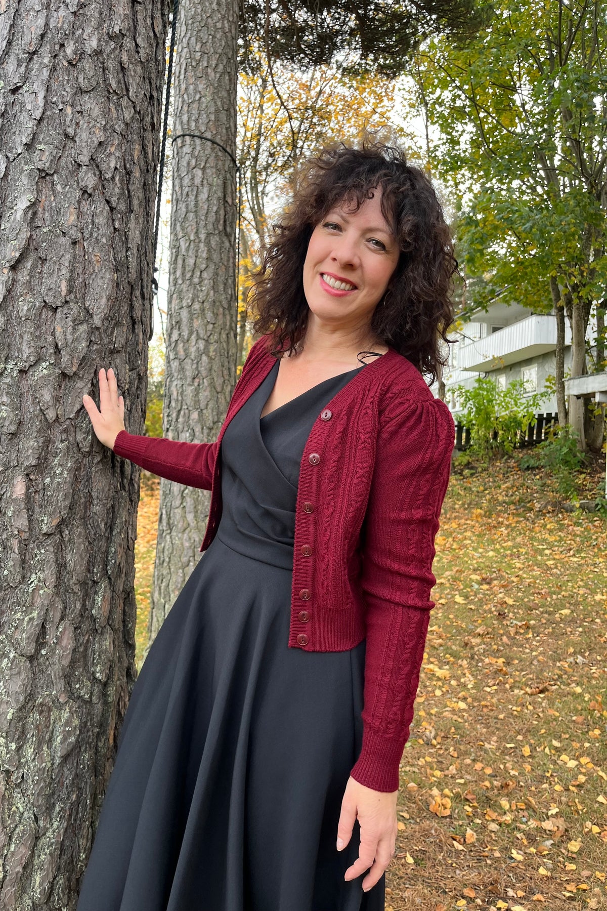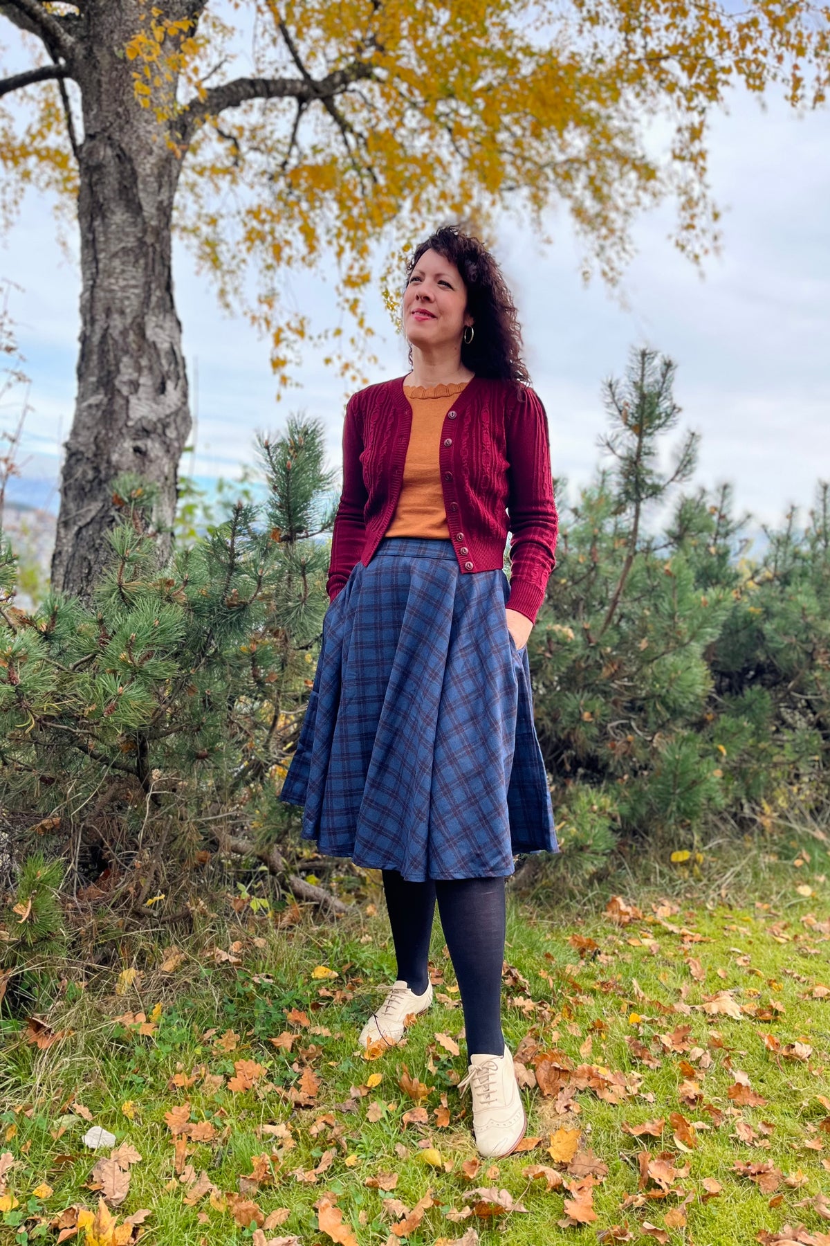 Cardiganen er tung, myk og utrolig behagelig, med den perfekte balansen mellom vintage-sjarm og praktisk hverdagsbruk. Den klassiske, korte passformen gjør at den passer like godt over en kjole, som til skjørt eller bukser – et allsidig plagg du kan bruke året rundt.